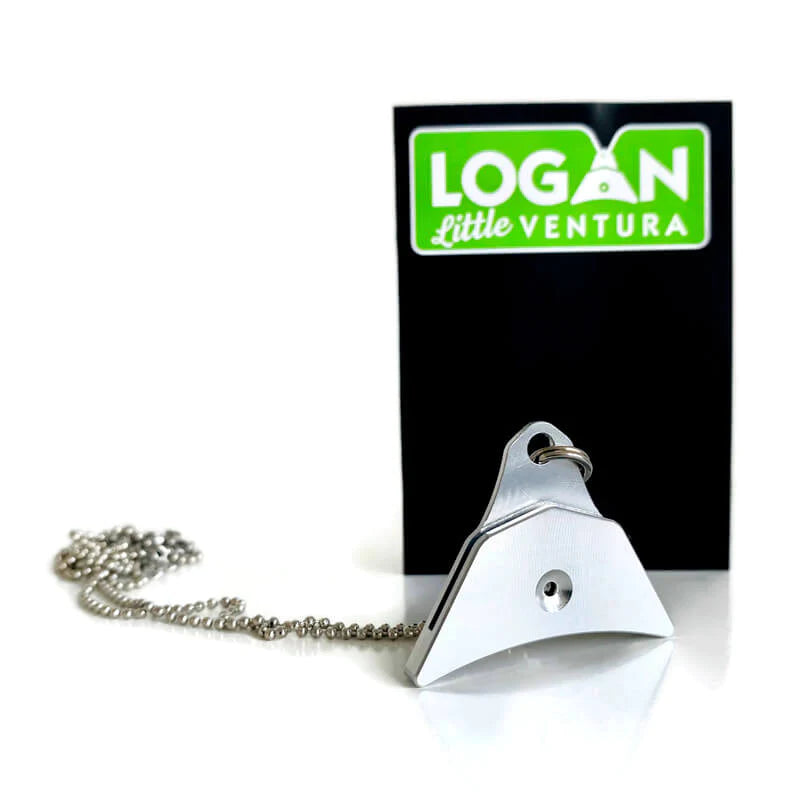 This Little Ventura is a three quarter scale version of our Logan Ventura anodised aluminium whistle. The whistle measures 3.5cm across at the widest point.